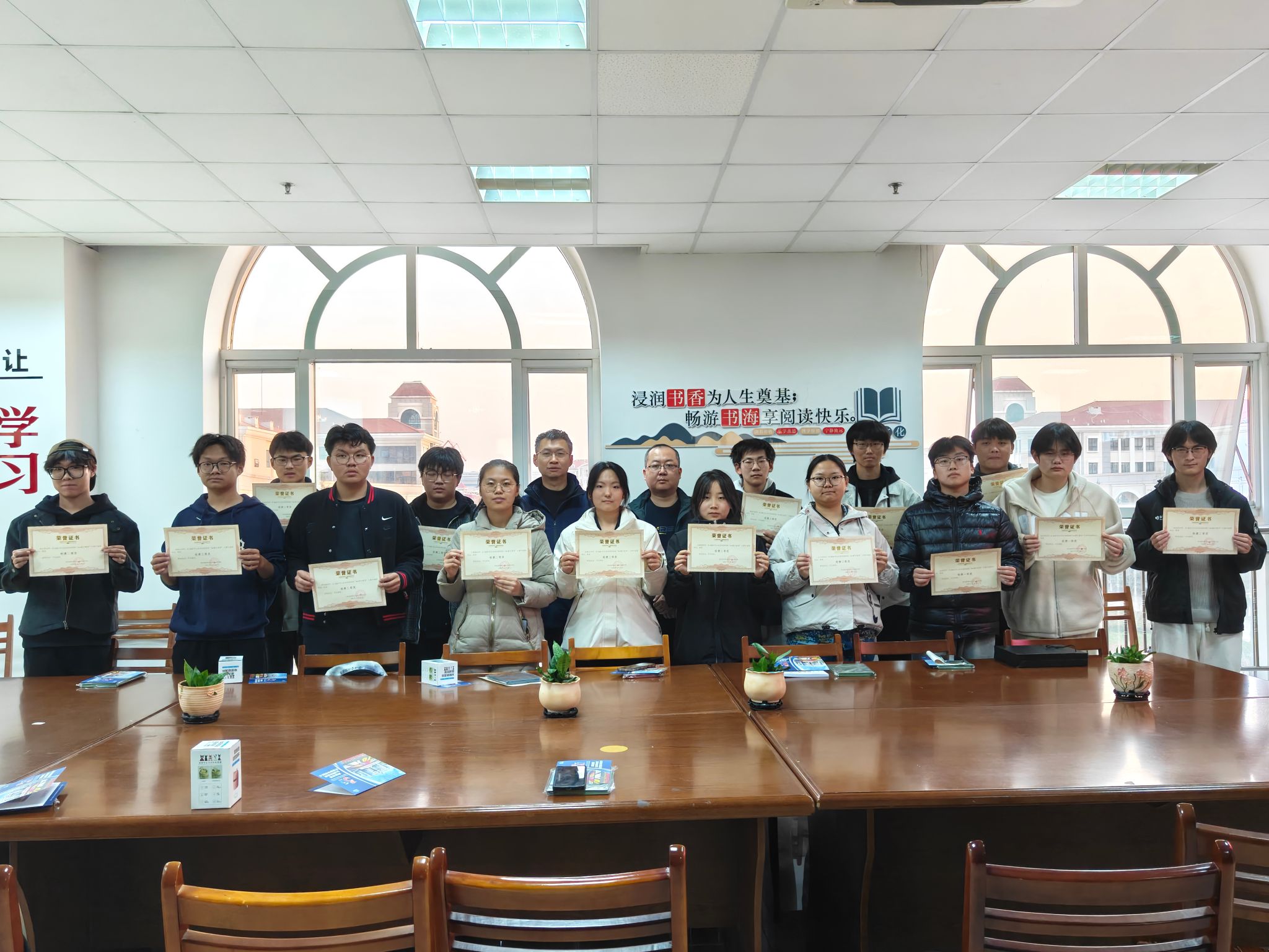 11月20日,图书馆在第二借阅厅举行山东省高职院校“AI+数字素养”大赛颁奖仪式,图书馆副馆长王致刚、赛事指导教师及获奖学生、图书馆大一勤工助学同学共同参加,表彰学子在省级赛事中的优异表现。
