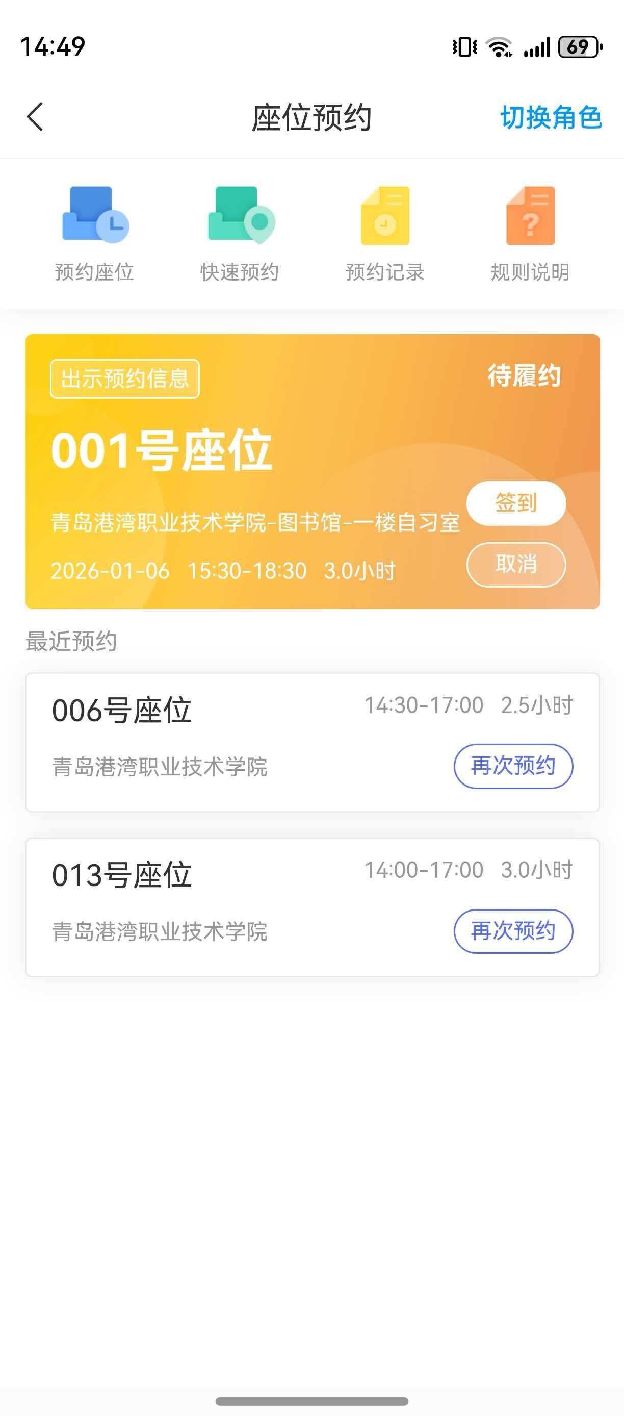 2.禁止使用任何非正常手段进行签到等操作,否则暂停预约功能。